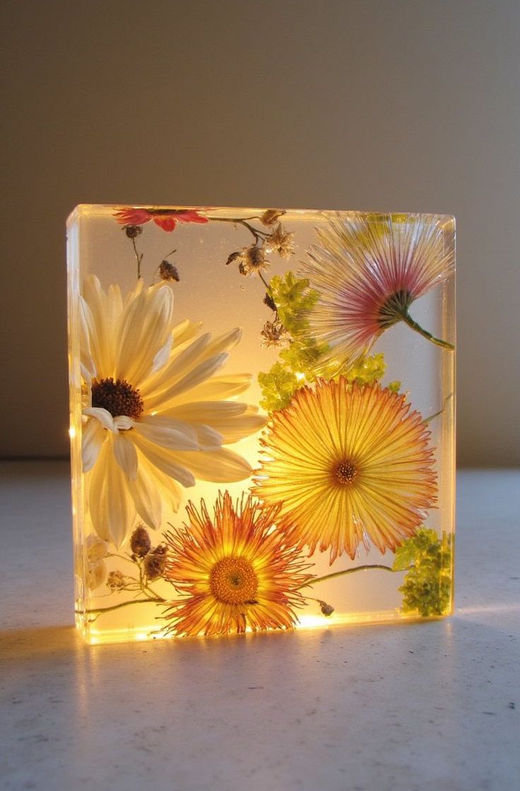 Une façon populaire d'utiliser la résine consiste à enfermer des végétaux séchés à l'intérieur. La résine préservera leurs beauté et leurs délicatesse au fil du temps, créant une œuvre botanique qui attirera tout les regards.